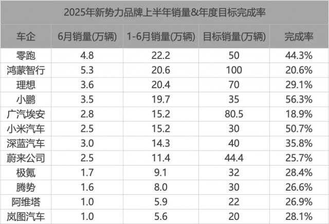 新势力经营和存活压力巨大:与自主传统车企相比,新势力车企的年度销量目标达成率明显偏低。在统计的 12 家新势力车企中,仅有 3 家的销量表现达到行业普遍认可的及格标准(即年度销量目标的 40%)。考虑到整体市场居高不下的竞争烈度,部分企业的经营状况还可能进一步恶化。