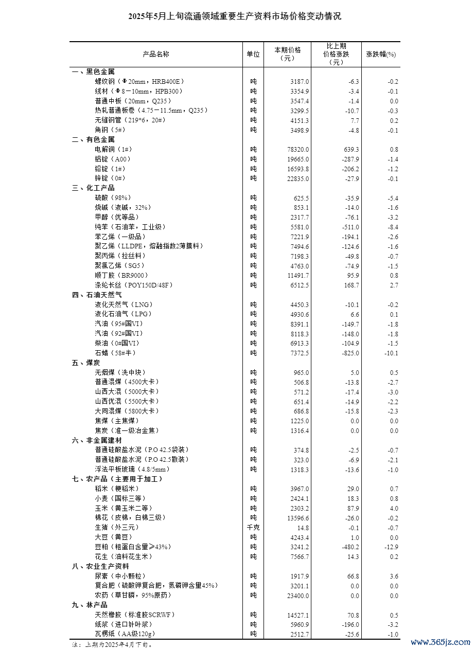 国家统计局:5月上旬流通领域重要生产资料市场12种产品价格上涨国家统计局:5月上旬流通领域重要生产资料市场12种产品价格上涨